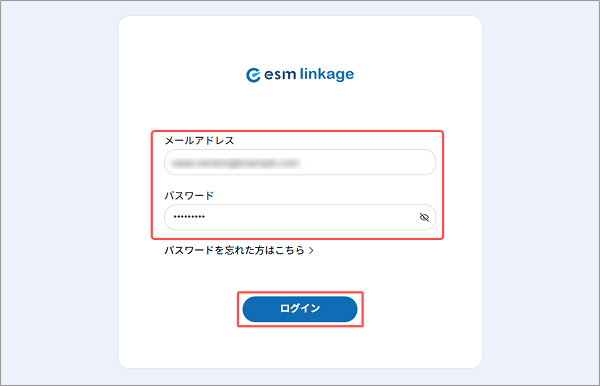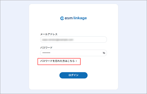 - パスワードを忘れてしまった場合は、esm linkageのログイン画面の[パスワードを忘れた方はこちら]より、再発行の手続きが可能です。