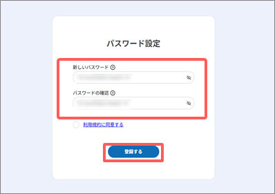 - 初回ログインの場合は[パスワード設定]画面が表示されますので、次回以降にログインする際のパスワードを登録してください。