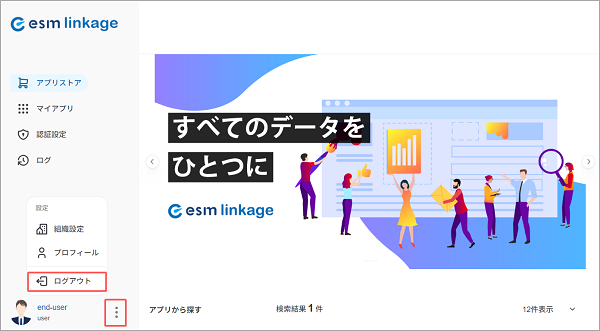 ボタンをクリックして[ログアウト]を選択します。