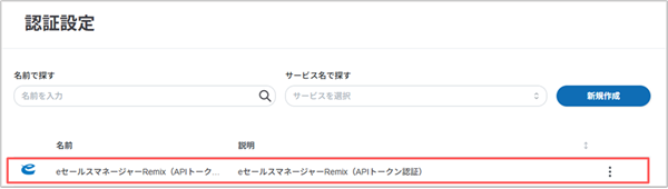 | eセールスマネージャー(APIトークン認証)認可設定(APIキー) | 登録したeセールスマネージャー(APIトークン認証)許可設定の名前を選択します。 eセールスマネージャー(APIトークン認証)許可設定 |