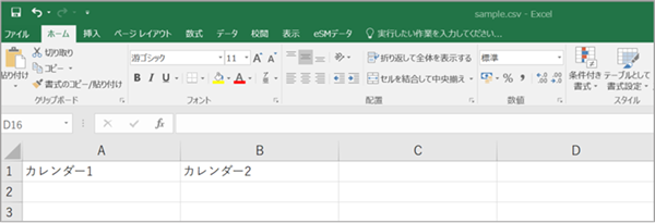 - 「カレンダー1」・「カレンダー2」に入力する社員項目は、事前に連携対象のシステムより出力したファイルより確認します。 schedulelinkの連携対象設定(esm)
