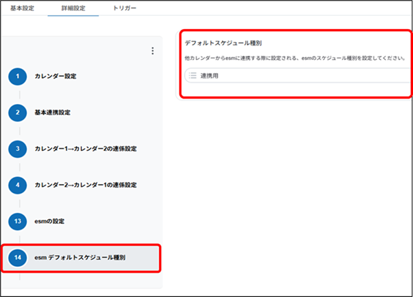 | デフォルトスケジュール種別 | esmにスケジュール登録される際のスケジュール種別を選択します。 |