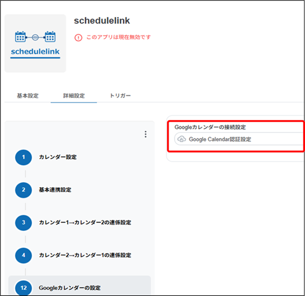 schedulelinkの連携対象設定(Googleカレンダー)