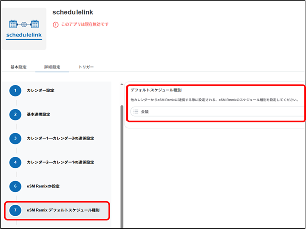 schedulelinkの連携対象設定(eSM Remix)