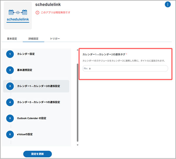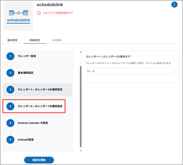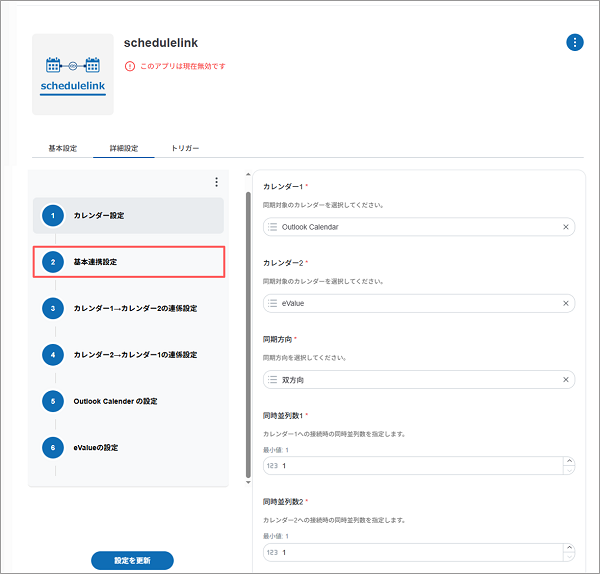 schedulelinkアプリの設定内容が更新されます。