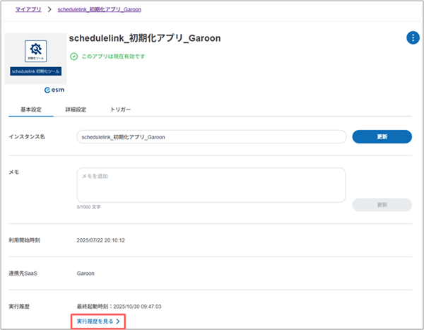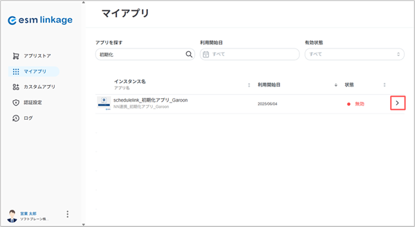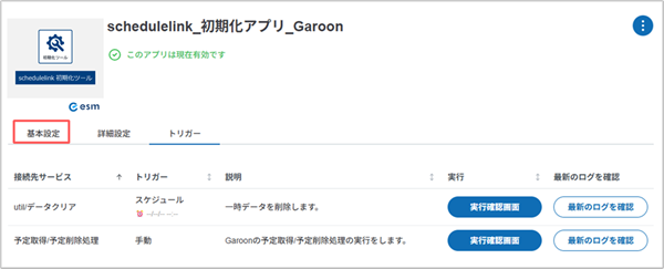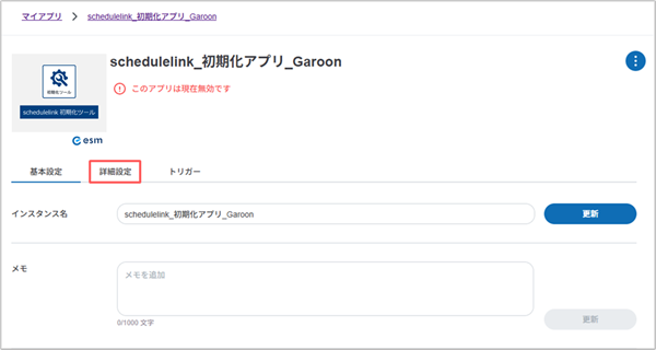 2. 「schedulelink_初期化アプリ_Garoon」の>を選択します。