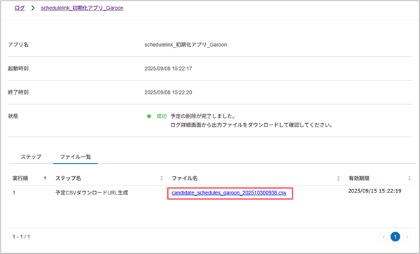 - 条件に合致するスケジュールデータが削除候補として出力対象となります。