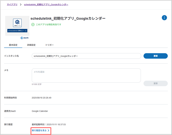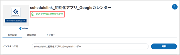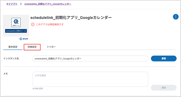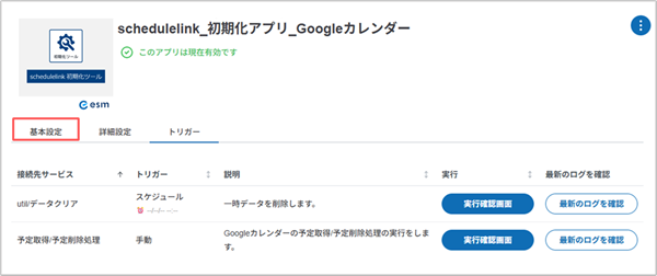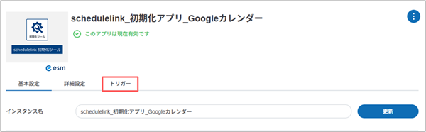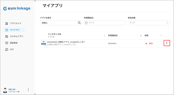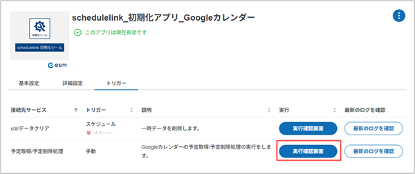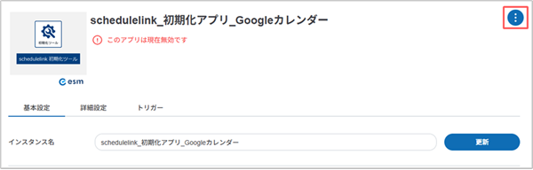 2. 「schedulelink_初期化アプリ_Googleカレンダー」の>を選択します。