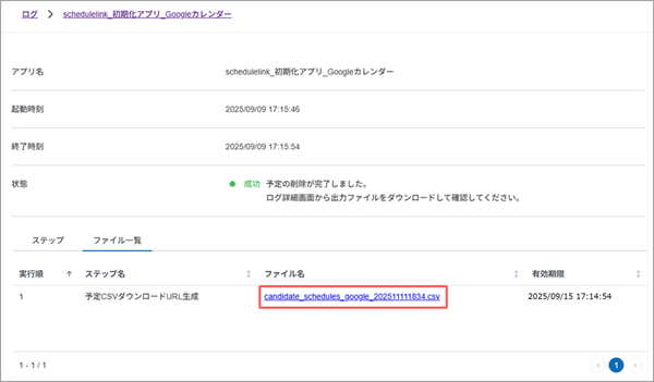 - 条件に合致するスケジュールデータが削除候補として出力対象となります。