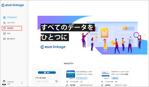 esm marketing連携アプリの認証設定の登録方法を説明します。