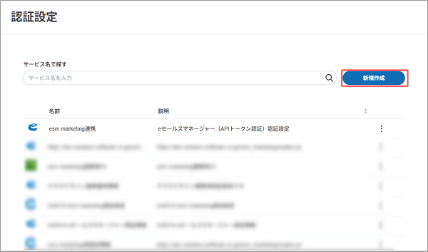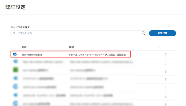 esm marketing連携アプリに設定する、eセールスマネージャー(APIトークン認証)の認証設定の登録方法を説明します。