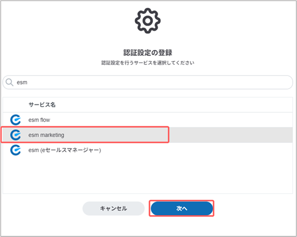[esm marketing認証設定]画面が表示されます。