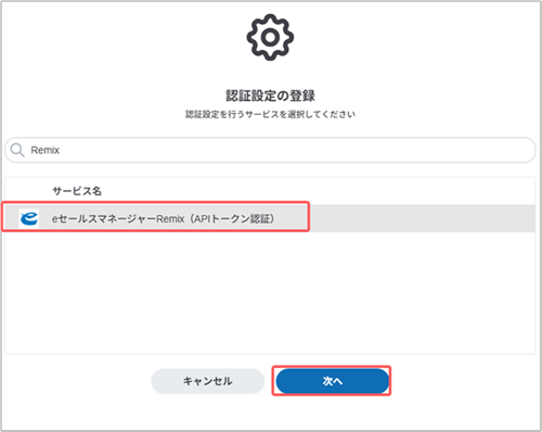 4. [eセールスマネージャー (APIトークン認証)]を選択し、[次へ]ボタンをクリックします。
