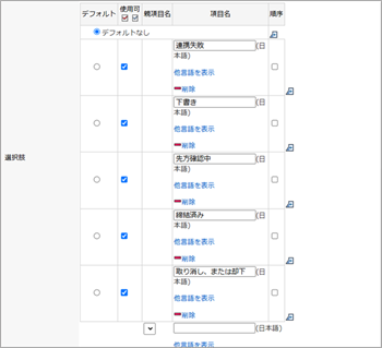 | 転送許可フラグ | チェックボックス | 書類の転送許可を設定します。 選択肢に「可」を設定します。 |