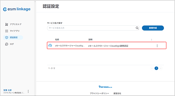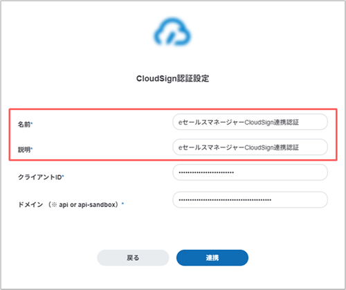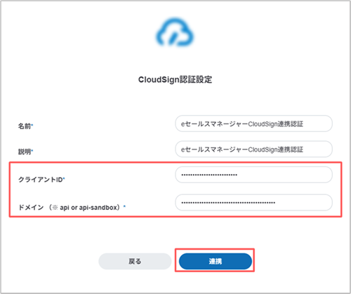 [CloudSign認証設定]画面が表示されます。