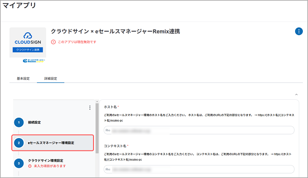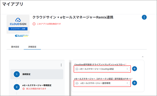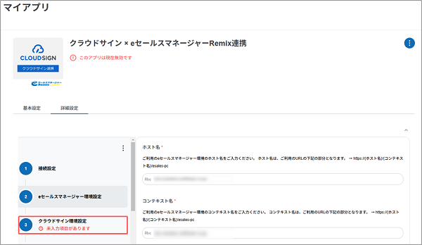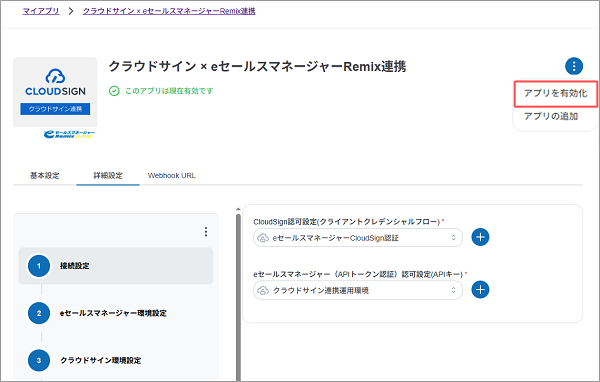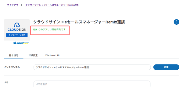 クラウドサイン連携アプリの状態が有効化に変更されます。