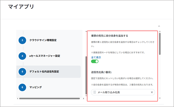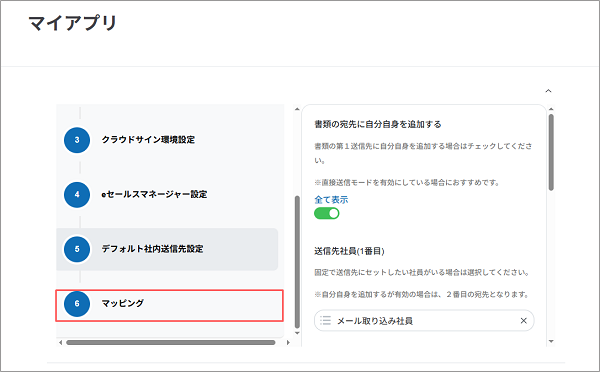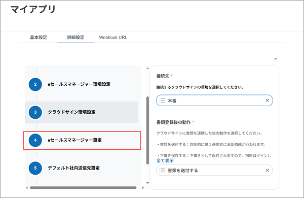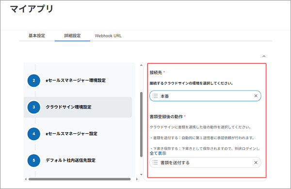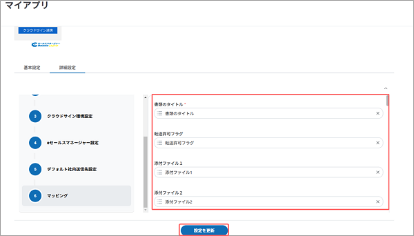 続けて、クラウドサインへ書類情報を送信するための設定を行います。