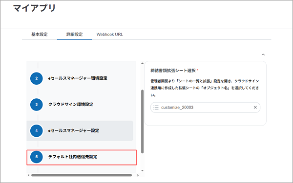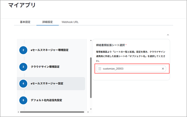 - 拡張シートに設定した、同じ名前の項目を選択します。 クラウドサイン連携用の拡張シートを登録する