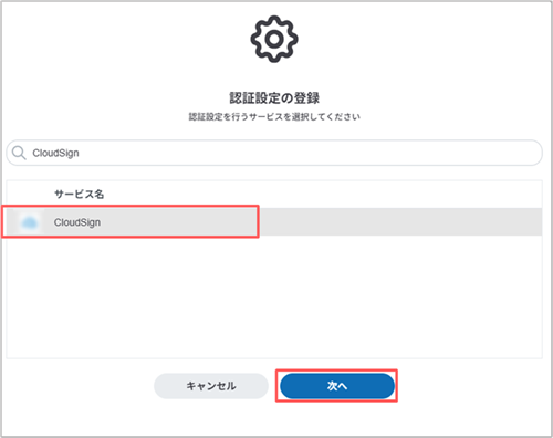 3. [CloudSign]を選択し、[次へ]ボタンをクリックします。