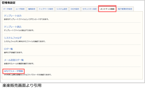 3. [メンテナンス情報]より[APIパラメータ情報]を選択します。