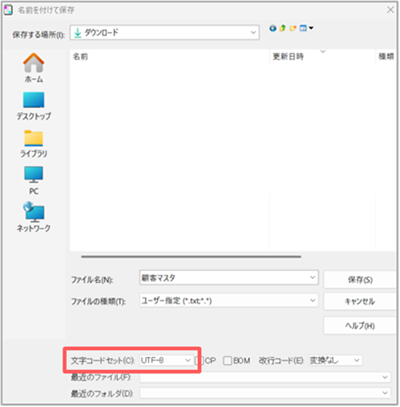 保存の際、エンコードで「UTF-8」を指定して保存します。