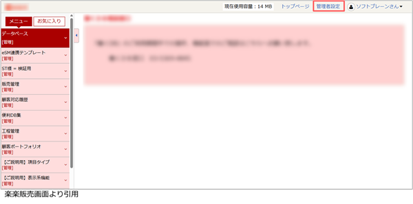 2. [管理者設定]をクリックします。