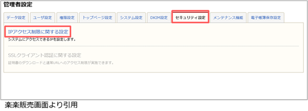 3. [セキュリティ設定]より[IPアクセス制限に関する設定]を選択します。