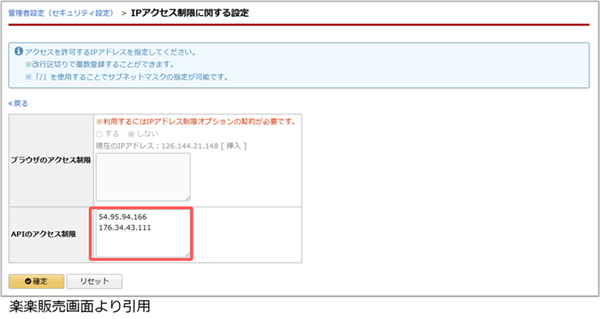 4. [APIのアクセス制限]に以下のIPアドレスを追記します。