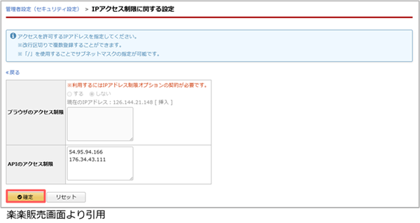 [IPアクセス制限に関する設定]画面が表示されます。