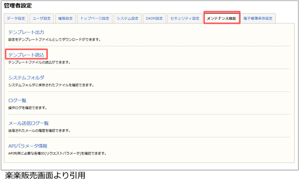 4. [メンテナンス機能]より[テンプレート読込]を選択します。