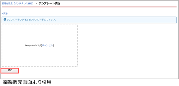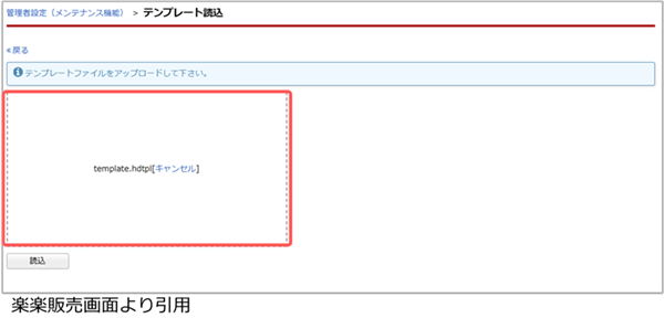 5. 手順1で解凍したテンプレートファイル(template.hdtpl)をドラッグアンドドロップでアップロードします。