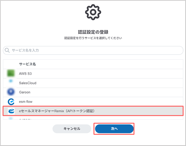 4. [eセールスマネージャー (APIトークン認証)]を選択し、[次へ]ボタンをクリックします。
