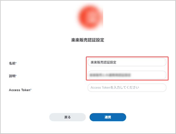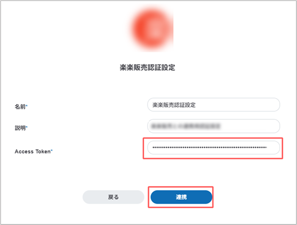 5. [Access Token]に、楽楽販売で発行したAPIトークンを入力して[連携]ボタンをクリックします。