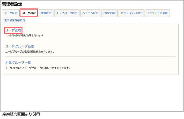 3. [ユーザ設定]より[ユーザ管理]を選択します。