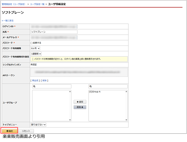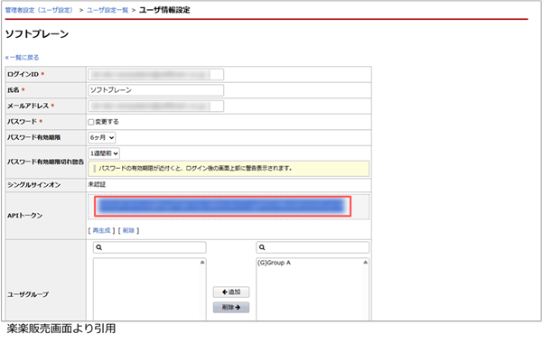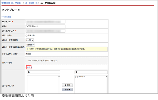 トークンの発行は、楽楽販売より行います。