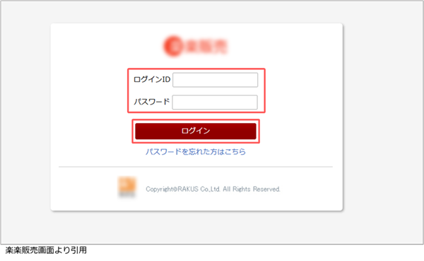 1. 楽楽販売のログイン画面にアクセスし、ログインIDとパスワードを入力後に[ログイン]をクリックします。
