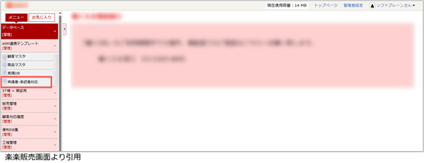 楽楽販売で、eセールスマネージャーと楽楽販売の連携を開始するための設定を行います。