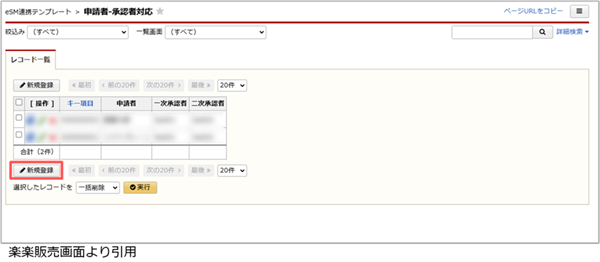 3. [レコード一覧]の[新規登録]ボタンをクリックします。