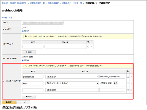 - 本手順を実施する前に、esm linkageで楽楽販売連携用アプリの設定やWebhookの発行を行ってください。 楽楽販売連携用アプリ設定