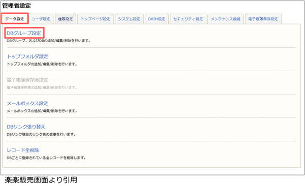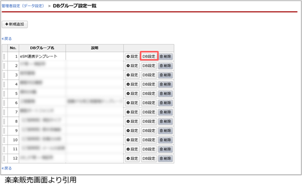 4. 連携対象のデータベースの[DB設定]をクリックします。