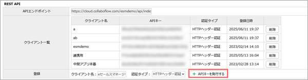 [クライアント一覧]に発行されたAPIキーが表示されます。