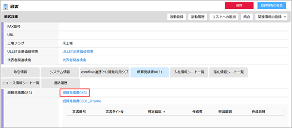 ここでは顧客詳細画面から申請書を作成する場合を例に説明します。