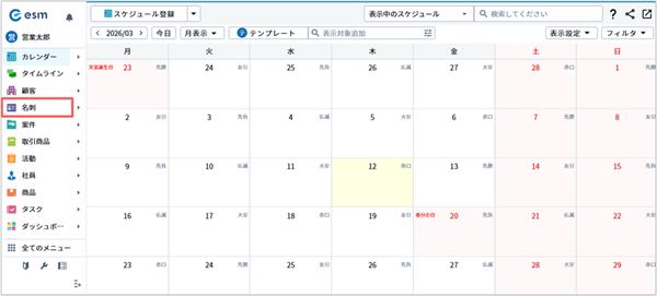 1. メニューより[名刺]を選択します。