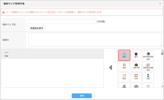 8. [結合マップ名][説明文]を入力し、[登録]ボタンをクリックします。