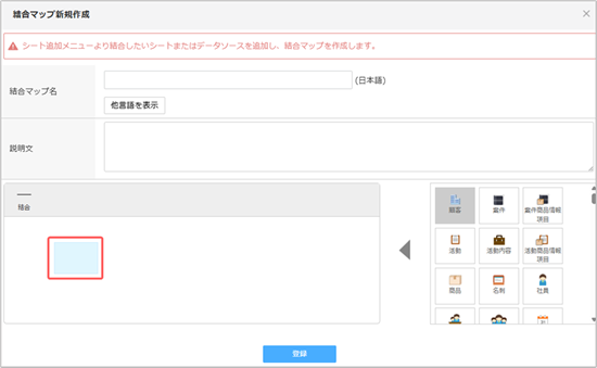 3. 使用するシートや結合、結合マップ名、説明文を編集して[登録]ボタンをクリックします。