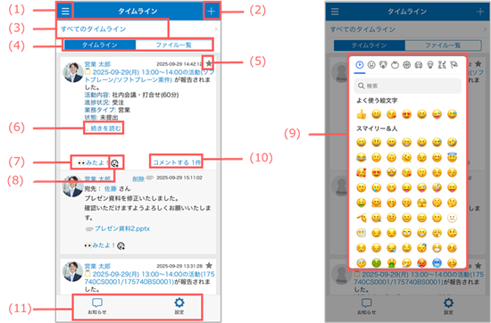 | (9) | 絵文字 | 記事に対する絵文字のリアクションを追加できます。 | |