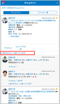 にカーソルを合わせると、[みたよ!]を押した社員を確認することが可能です。
