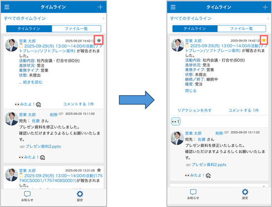 スターつきでタイムラインに表示され、再度確認しやすくなります。