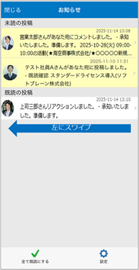 - 未読の通知を左にスワイプすると[