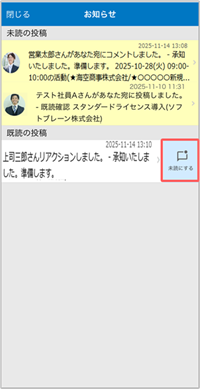 ここでは既読したお知らせを未読に変更する方法を説明します。